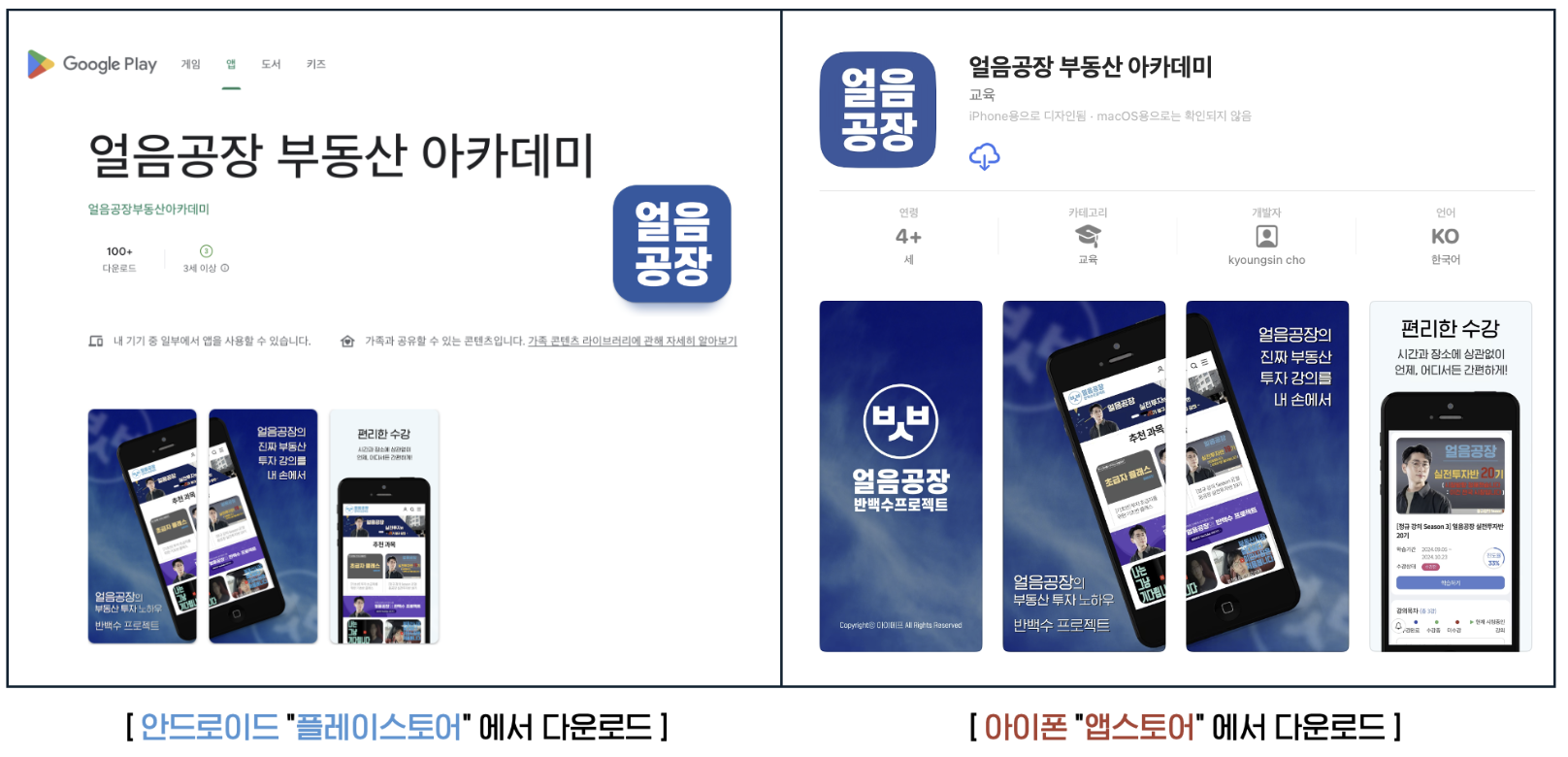 2. 핸드폰 (모바일) 기기로 수강 방법 ("얼음공장 부동산 아카데미" 어플 다운로드)